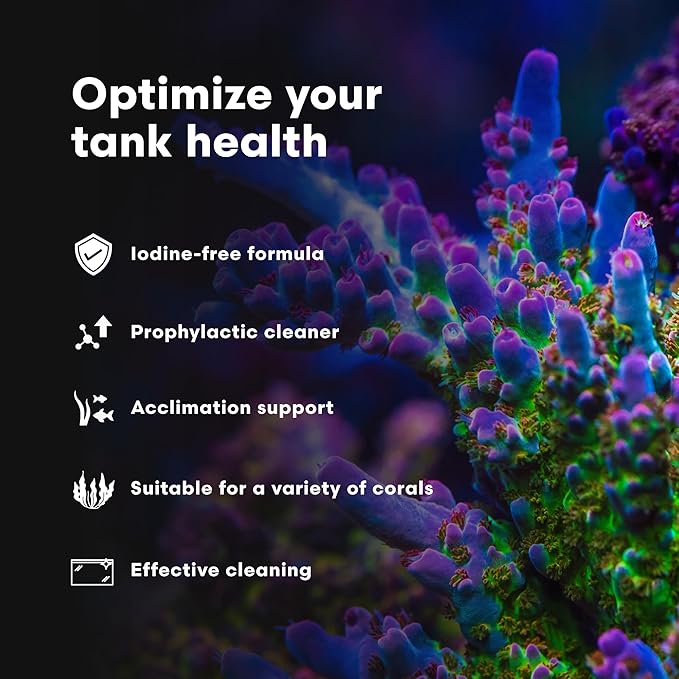 - ACCLIMATION SUPPORT – This coral cleaner is suitable for a variety of corals, including stony and soft corals, sea anemones, mushroom anemones, and zoanthids. The coral dipping solution facilitates the acclimation process for newly fragmented corals, aiding in their transition into the new aquarium