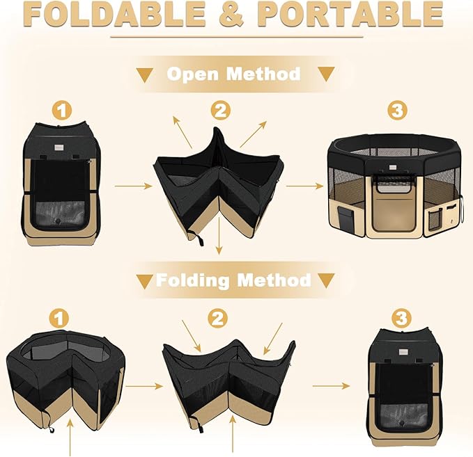 - NEWLY DESIGN MODEL 2024: Roomy 8-Panel design with protected seams and reinforced corners. Made from durable water-resistant materials. Removable zippered top can be removed easily removed for indoor use & closed for outdoor use to provide shade. Zippered door provides easy in/out access for your pet. Close the door to keep your pet safely inside.