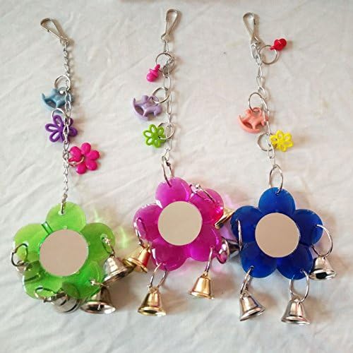 Hypeety Pet Bird Mirror with Bell Interactive Parrot Toy for Parrot Macaw African Greys Budgies Cockatoo Parakeet Cockatiels Conure Lovebird Cage Bells Mirror (B)