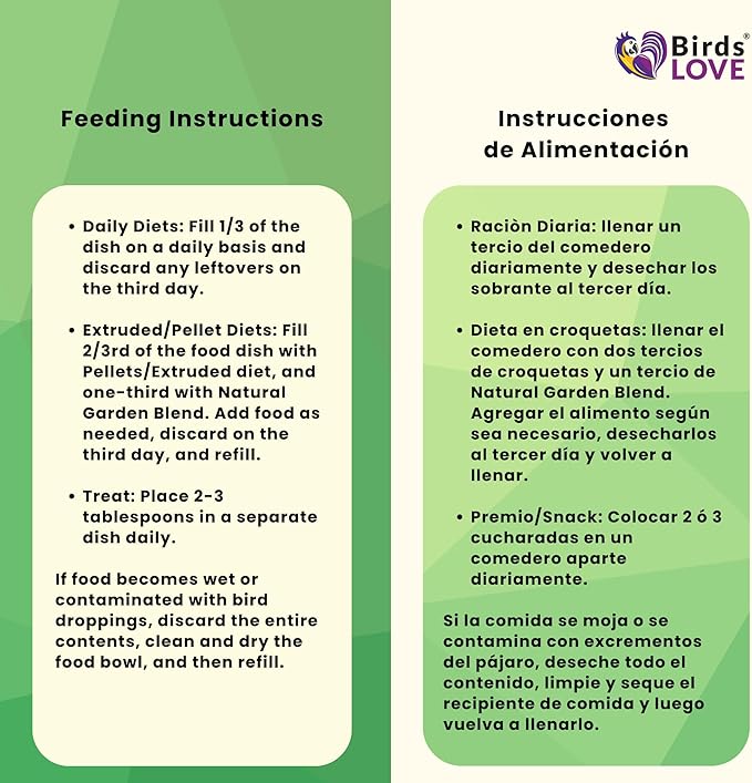 • Colorful and nutritional variety: no artificial coloring, natural blend to draw your feathered friend's attention