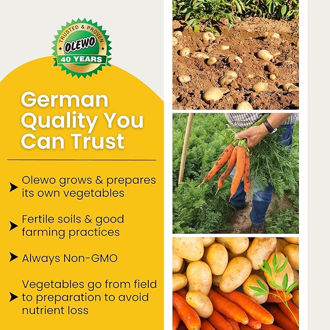 - HEALTHY DOG FOOD: Our highly digestible Rootsies dog food topper for picky eaters is a natural dog food and dog appetite stimulant that was created with dogs in mind that have sensitive stomachs and are prone to stomach upset. We believe in nutrition inspired and proven by nature. When we choose nature, we can feel and see the difference. Olewo is a trusted brand from Germany. The company grows its own vegetables and monitors every step of preparation to produce the highest quality pet food.