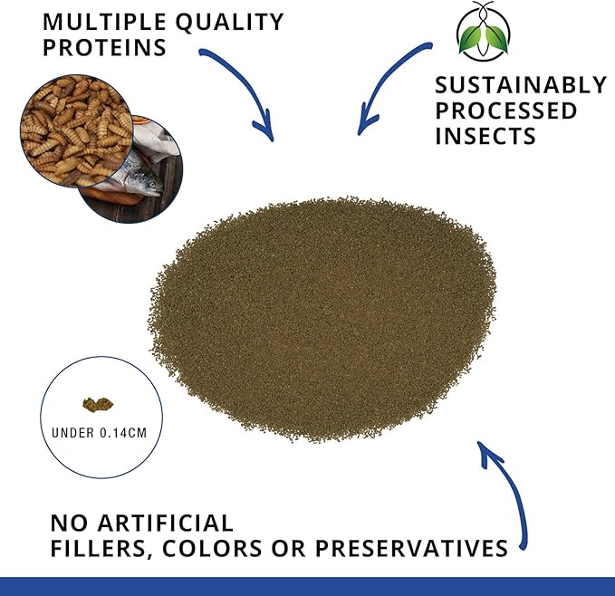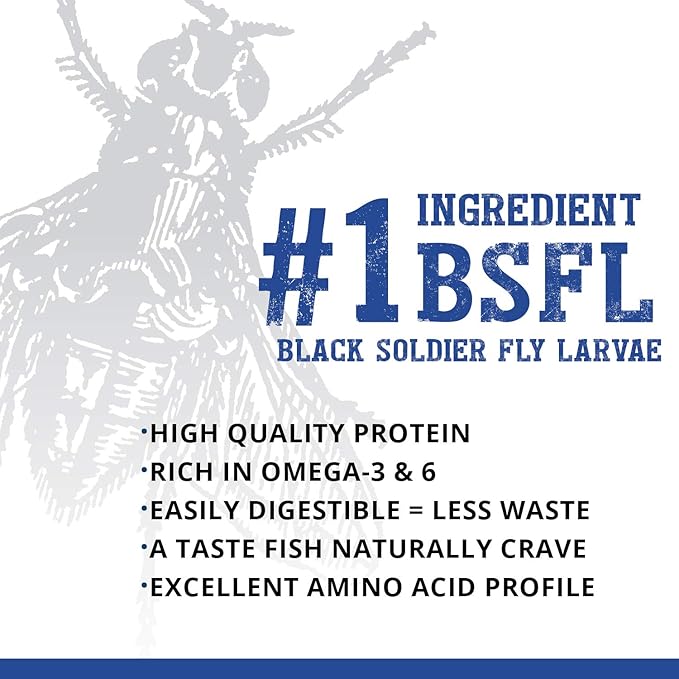 • Betta fish food that contains up to 40%, nutrient-rich Black Soldier Fly Larvae, the first ingredient