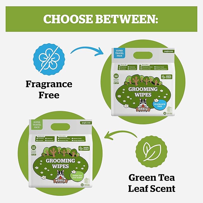Pogi_ Dog Wipes Travel Packs Hypoallergenic Pet Wipes for Paws, Body & Butt Cleaning & Hydrating, Fragrance Free, 240-Count
