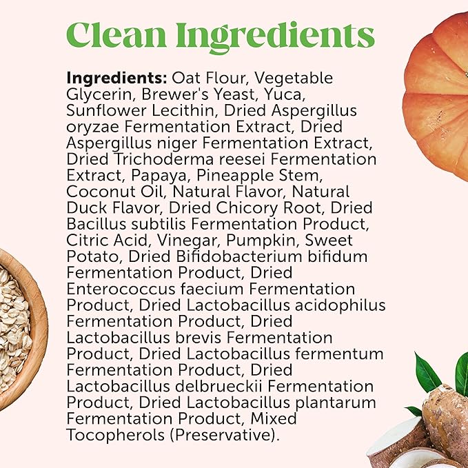 - THE INSIDE STORY: These soft chews are formulated with probiotics, the “good bacteria” that support digestion, gut & immune health. This is also a probiotic for dogs itching & licking paws. Plus, it supports sensitive stomachs with prebiotics for dogs that boost probiotics, & fiber that promotes regularity & a healthy gut microbiome. Sweet potato & pumpkin are also in the mix for added fiber & nutrients, as well as enzymes that help digestion & overall health.