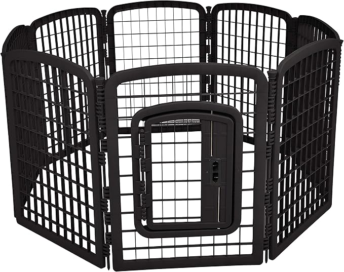 Amazon Basics 8-Panel Octagonal Plastic Pet Pen Fence Enclosure With Gate - 34 inches, Black