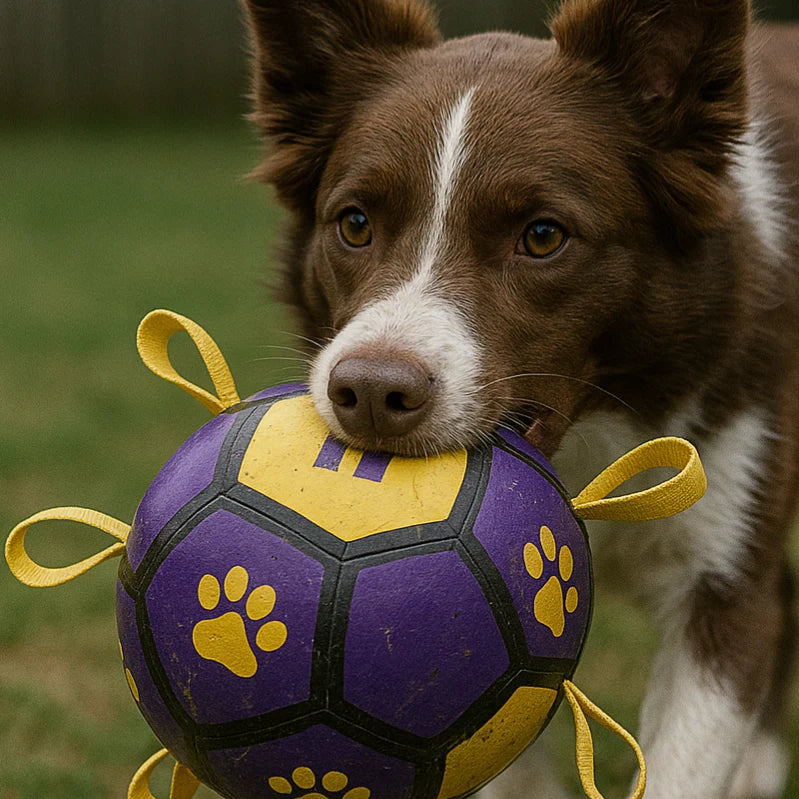 The top handle and side tabs give my pup a solid bite point and make pickup effortless. High-contrast colors are easy to spot, and it wipes clean; a quick air top-off keeps the shape.