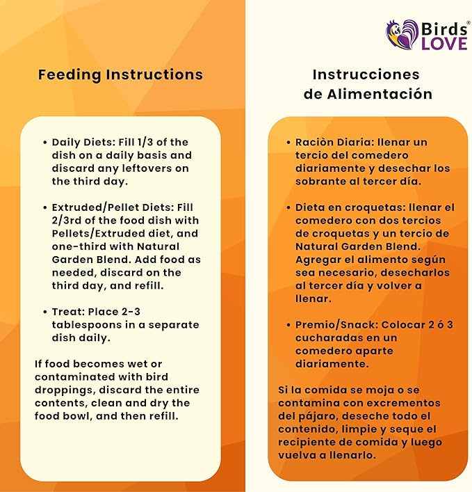 • Colorful and nutritional variety: no artificial coloring, natural blend to draw your feathered friend's attention