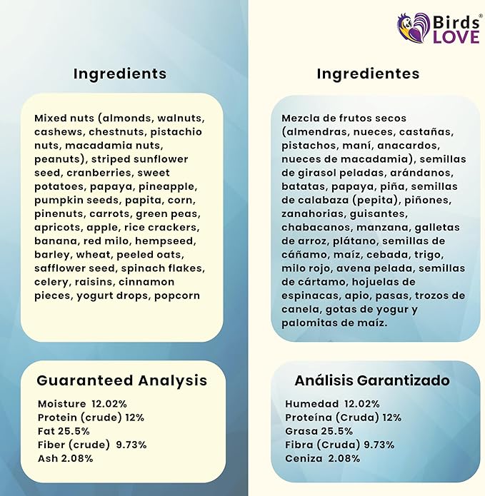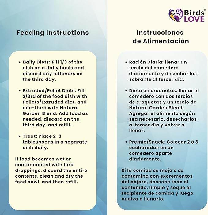 • Colorful and nutritional variety: no artificial coloring, natural blend to draw your feathered friend's attention