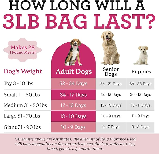 • Easy and safe preparation of a raw diet for your canine companion in a matter of minutes, right in your own kitchen; 3 pound bag conveniently makes 28 one-pound, finished meals