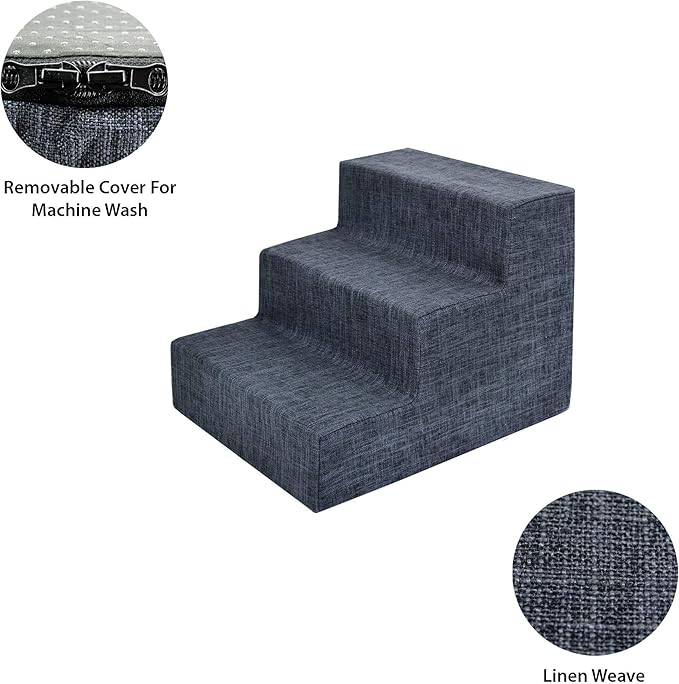 Best Pet Supplies Dog Stairs for Small Dogs & Cats, Foam Pet Steps Portable Ramp for Couch Sofa and High Bed Non-Slip Balanced Indoor Step Support, Paw Safe No Assembly - Dark Gray Linen, 3-Step