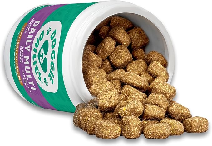 Doggie Dailies 5 in 1 Multivitamin for Dogs, Dog Multivitamin for Skin and Coat Health, Joint Health, Improved Digestion, Antioxidants, Support a Healthy Immune System (Peanut Butter) 225 Soft Chews