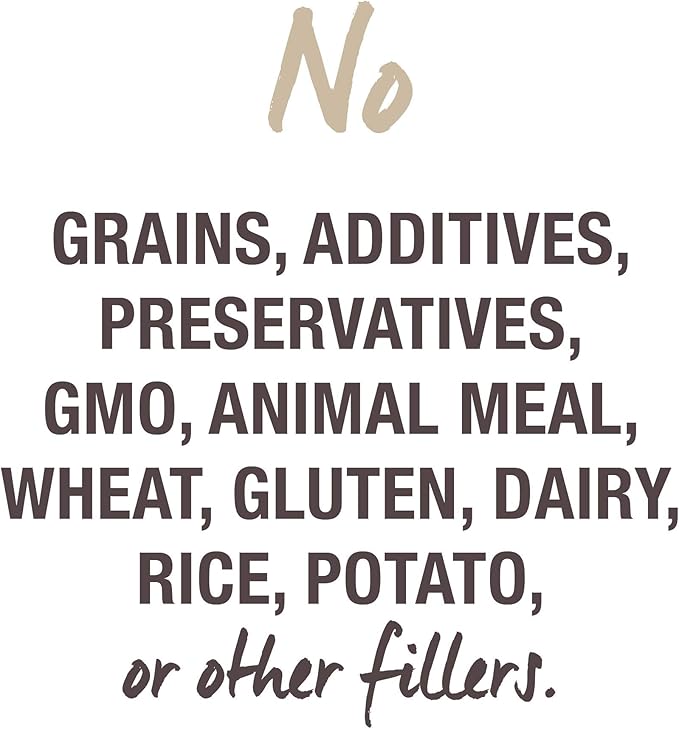 • Made without grain, wheat, gluten, GMO, ingredients, corn, soy, cereals, dairy, dairy, rice, potato and all other fillers