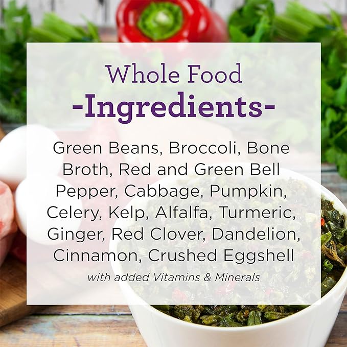 - Green food pre-mix makes an ideal base for a nutritionally complete low-carb diet; 100% grain-free, our holistic blend of six (6) nutritious dehydrated vegetables contain absolutely no dies, fillers, wheat, corn, soy, nor preservatives