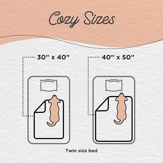• Two cozy blanket sizes – 30 in by 40 in and 40 in by 50 in; the perfect amount of coverage, great for dogs, cats, and multiple pets