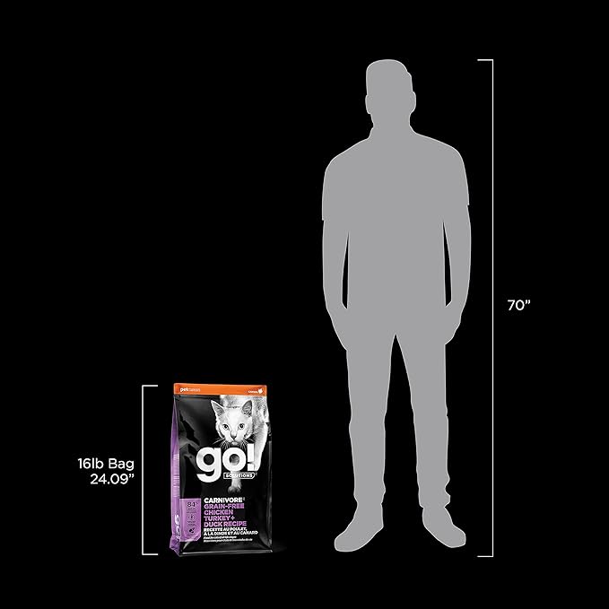 Go! Solutions Carnivore, Grain-Free, Protein Rich Dry Cat Food, Chicken, Turkey and Duck Recipe, 16 lb Bag