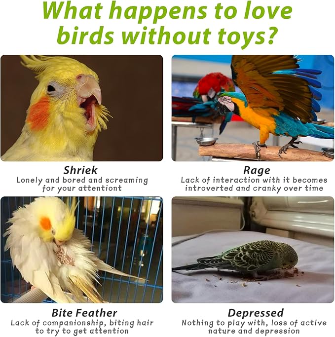- Multifunctional bird toys are suitable for parrot sports, standing, climbing, playing, chewing, resting, etc. These bird playhouse sets keep your pet active and relieve boredom