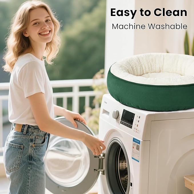 Love's cabin Round Donut Cat and Dog Cushion Bed, 20in Pet Bed for Cats or Small Dogs, Anti-Slip & Water-Resistant Bottom, Super Soft Durable Fabric Pet Beds, Washable Luxury Cat & Dog Bed Green