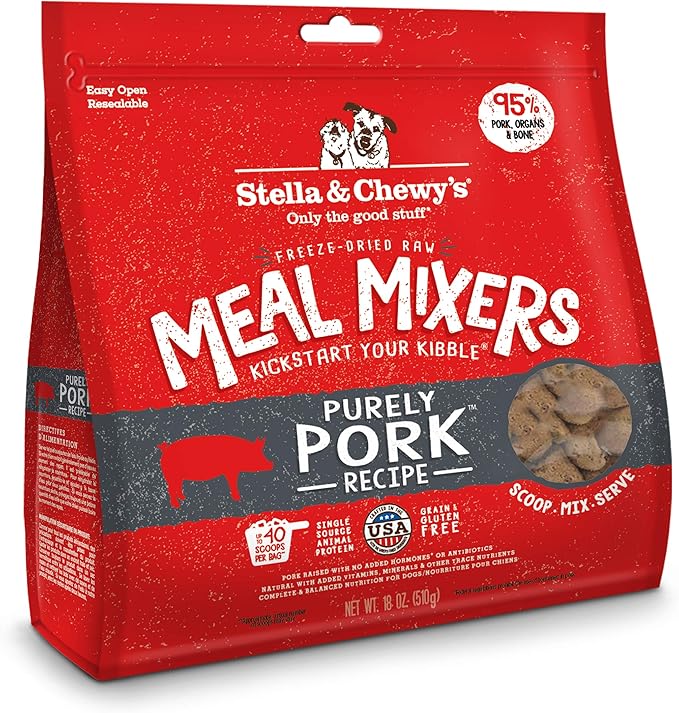 Stella & Chewy's Freeze Dried Raw Purely Pork Meal Mixer Dog Food Topper for Small & Large Breeds Grain Free, Protein Rich Recipe 18 oz Bag