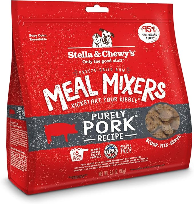Stella & Chewy's Freeze Dried Raw Purely Pork Meal Mixer Dog Food Topper for Small & Large Breeds Grain Free, Protein Rich Recipe 3.5 oz Bag