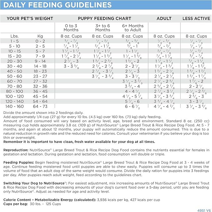 NutriSource Dog Food, Made with Trout and Rice, Large Breed, with Wholesome Grains, 30LB, Dry Dog Food