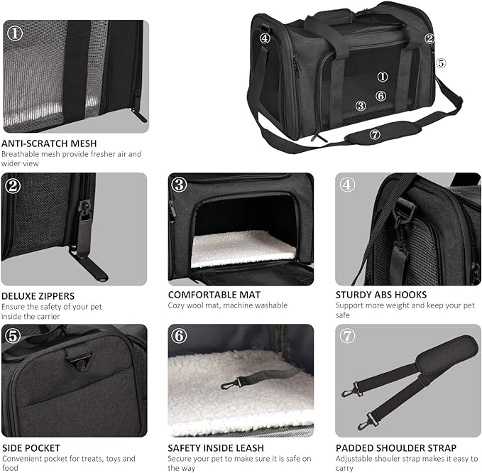 - NOT AIRLINE APPROVED - The large pet carrier is only suitable for daily travel, car seat journey and pet hospital etc. Do not place it under an airplane seat