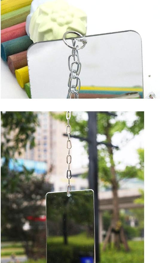 - 【Clear & Durable Acrylic Mirror】 Crafted from high-quality acrylic, this bird mirror is lightweight, shatterproof, and safer than glass or stainless steel. The ultra-clear surface offers a true reflection that attracts birds. 📌Please remove the protective film from the mirror before use.