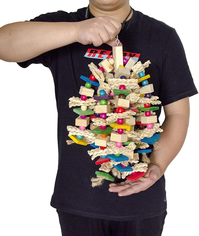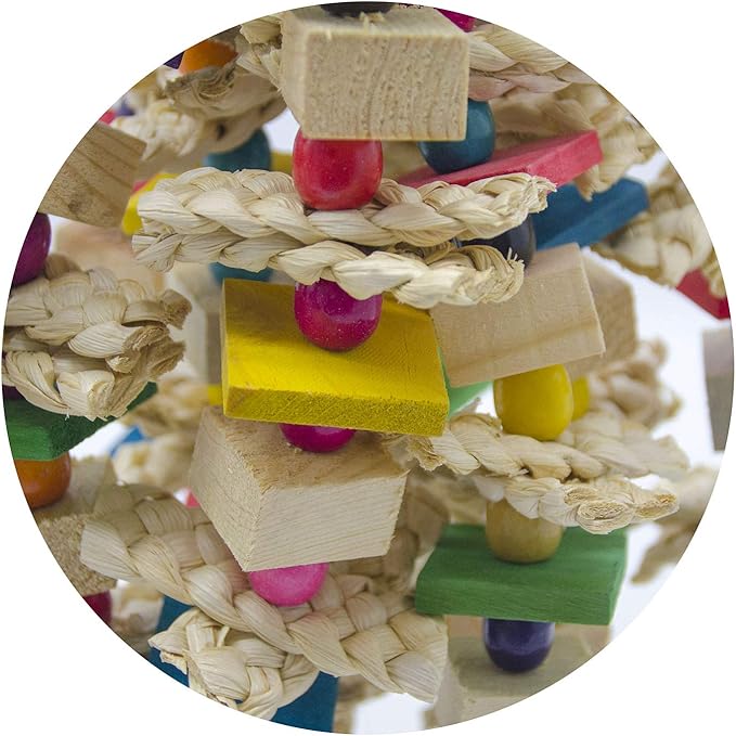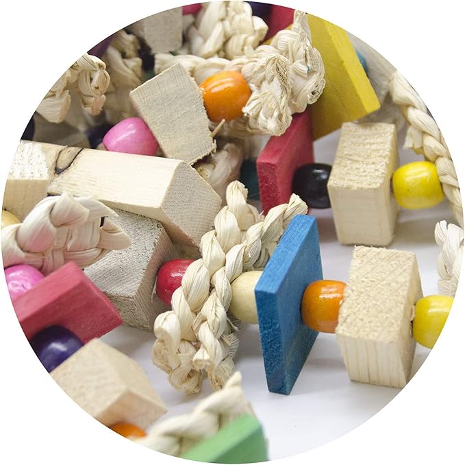 - Material: bird toys is made of food grade color and nature wood,completed with purely handmade which are more bite resistand and durable.