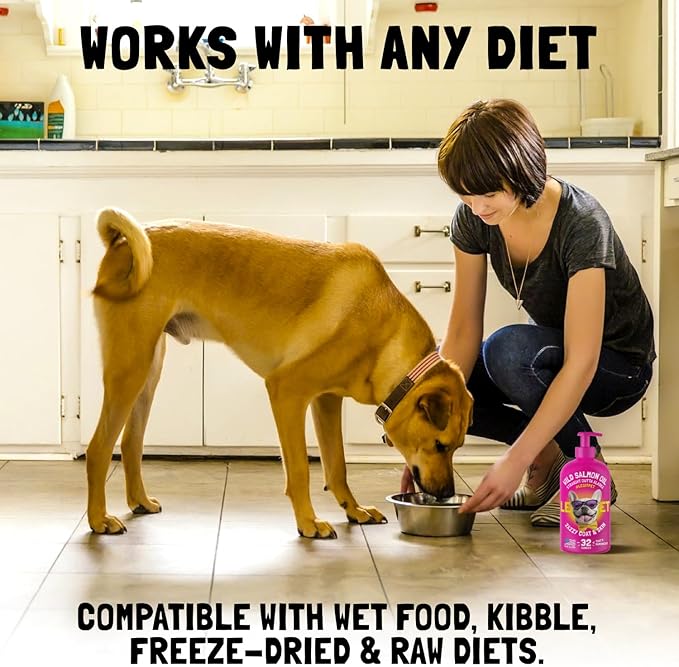 - A Treat For Pets That's Easy & Mess-free - for pet parents looking for an alternative to capsules or soft chews, all it takes is a few quick pumps of this liquid Salmon Oil to mix nicely with your dog or cat foods. Small, medium, and large breeds love it. Compatible with kibble, wet food and raw B.A.R.F fans as well.
