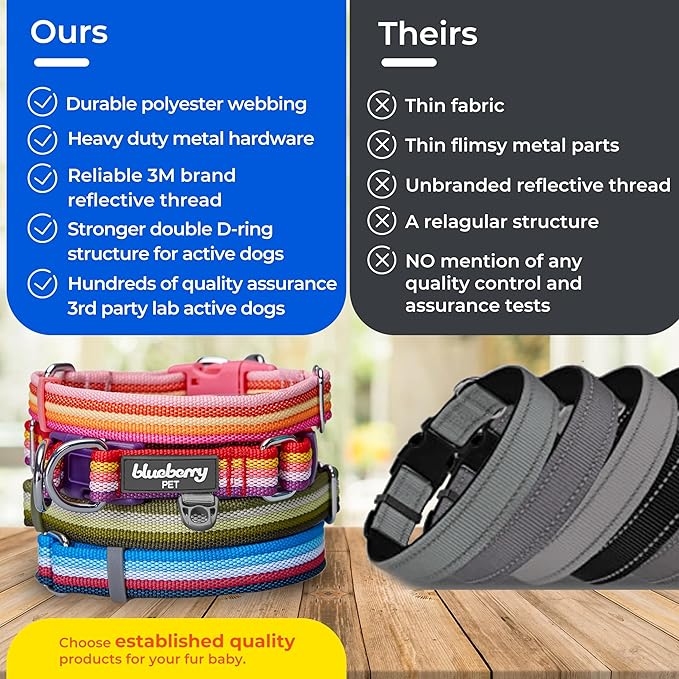 Blueberry Pet 3M Reflective Dog Collars | Adjustable Dog Collar w/Multi-Colored Stripe - Azure Blue and Raspberry Red | Nylon Pet Collars for Dogs & Refflective Dog Collar for Small Dogs
