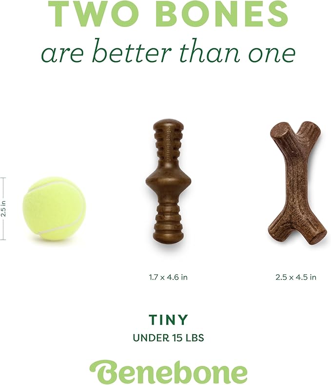 Benebone 2-Pack Maplestick/Zaggler Durable Dog Chew Toys, Real Bacon, Real Maplewood, Made in USA, Tiny, Extra Small, Brown