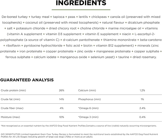 Go! Solutions Sensitivities Limited Ingredient, Grain-Free Dry Dog Food, Turkey Recipe for Sensitive Stomach, 12 lb Bag