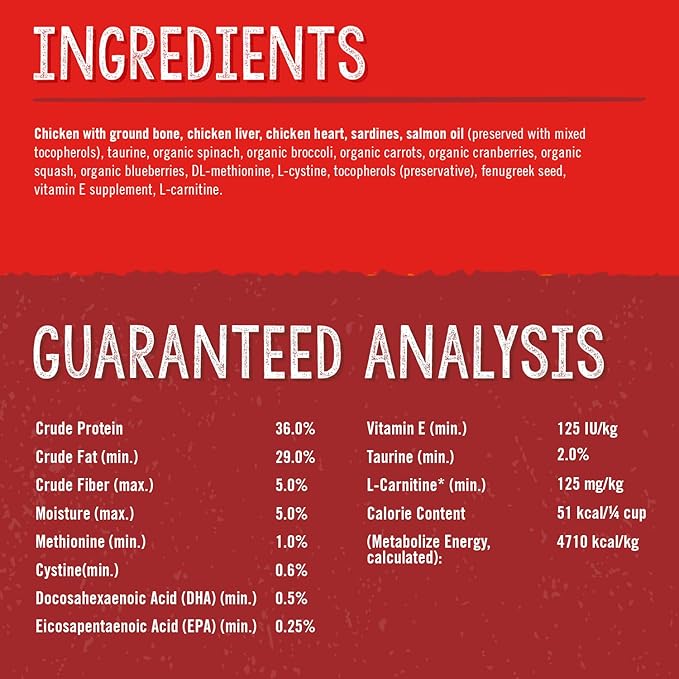 - ALL-IN-ONE SUPPLEMENT AND FEEDING SOLUTION that helps in aiding heart health and adds the benefit of raw nutrition to a dog’s diet in one convenient dog food. Includes levels of methionine, cystine to support healthy heart function.