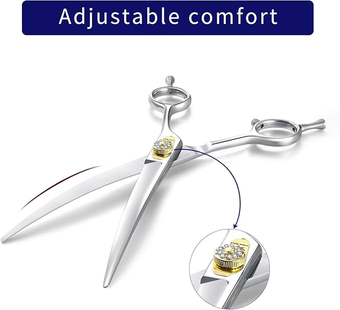 - Premium dog grooming curved scissors are crafted from the highest quality Japanese 440C steel, Ultra sharp Convex edge and hollow-ground, concave blades - smooth cutting, durability and Razor sharpness performance