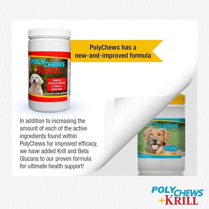 - Ideal supplement to support adult dogs with achy hips and joints, active dogs and growing puppies