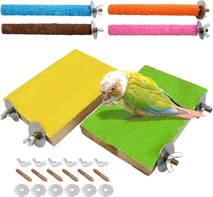 - Enjoy the Fun: These cockatiel toys stand rough surfaces to give your bird a comfortable controlled grip, providing excellent foot exercise. And the hard coating on the surface keeps beaks and nails trimmed naturally. Sturdy and perfect resting platform for the bird to just sit, fun to play, paw grinding, relax and sleep.