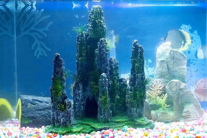- The unique color close to the real stone color, the large fish tank rock is decorated with smooth surface, exquisite carving, and decorated with moss, small trees, more beautiful and true, your fish will like it.