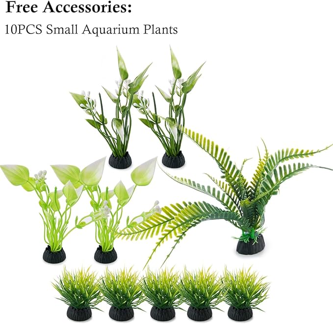 - Size H: 11in(28cm), L: 10.2in(26cm), W: 5.1in(13cm), suitable for medium and large aquarium over 13in(35cm) in height. Comes with 6 small artificial plants to aid in landscaping.
