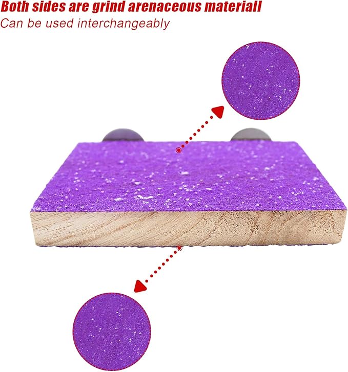 - Size: The parrot perch stand platform is 5.12*3.54*0.67inch/13*9*1.7 cm and two types of boards allow your pet to choose freely. The length of the paw grinding stick is 5.51inch/14cm and the diameter is 0.79inch/2cm.