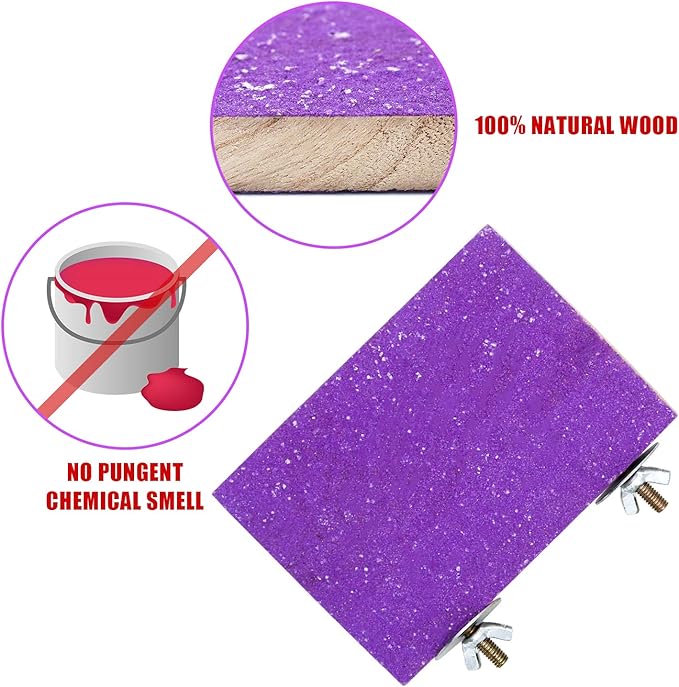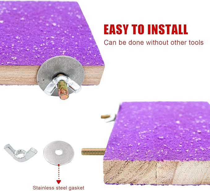 - Material - All the bird perch stand toys are made of 100% nature wood with quartz sand, edible coloring, food-grade safety and environmentally friendly. Screw and spacer with food grade 304 stainless steel, durable for use.