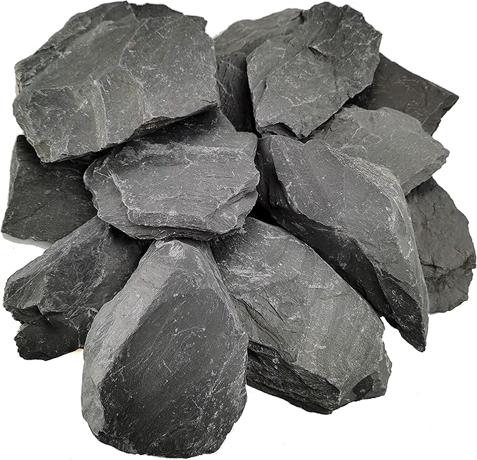 Voulosimi Natural Slate Rocks PH Neutral Stone Perfect Rocks for Aquariums, Landscaping Model,Tank Decoration,Amphibian Enclosures (12 LB, 5-7 inch)