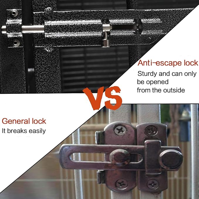 - Safe And Convenient Design: This large crate is built from steel and has a non-toxic, anti-rust finish.The dog crate with a front door for easy access,and the top door also can be opened for you interacting and exercise with your dog. The two locks with safety buckles ensure that your dog won’t escape when you aren’t around.