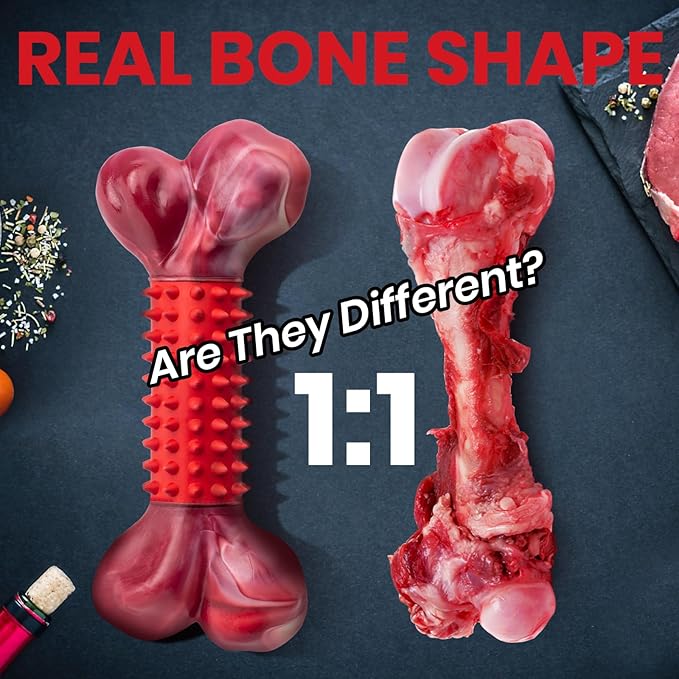 - Nylon & Rubber 2 IN 1: Dog chew toy combines nylon and rubber, catering to even the most aggressive chewers. The rubber part offers an initial challenge, perfect for dogs who love to chew. Once they’ve conquered the rubber part, simply remove it and add peanut butter or other canine-favorite treats to the nylon part for an even more challenging and engaging chew experience.