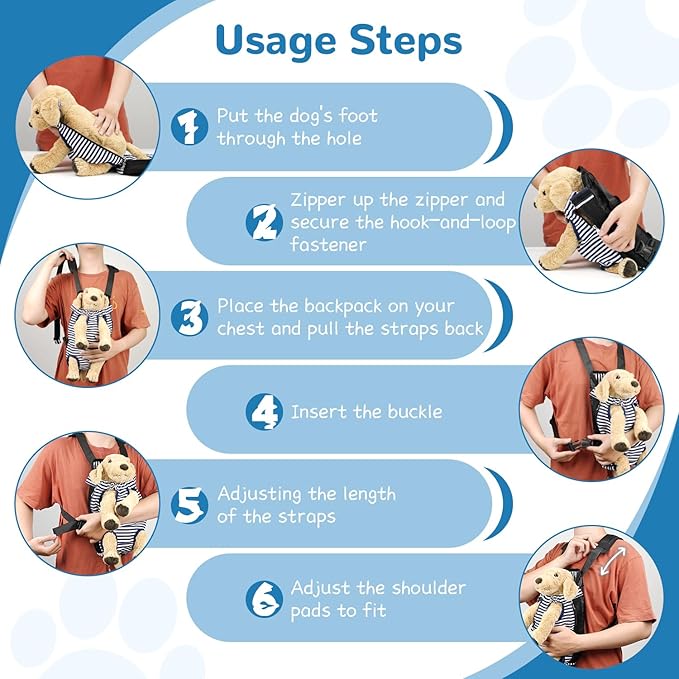- 3 Sizes Available for Your Beloved Pet: The suggested weight for the dog front backpack is for reference only. If your dog's body length requires size S but the girth requires size M, please choose size M. Additionally, leave at least an extra inch to ensure your pet's comfort.
