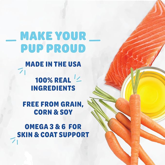 - Whole Ingredients: These yummy treats are made with real carrots and salmon oil. Free from grain, corn, and soy while still loaded with wholesome, locally-sourced ingredients. Dogs of all ages, sizes, and breeds can enjoy!