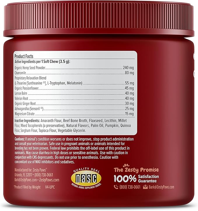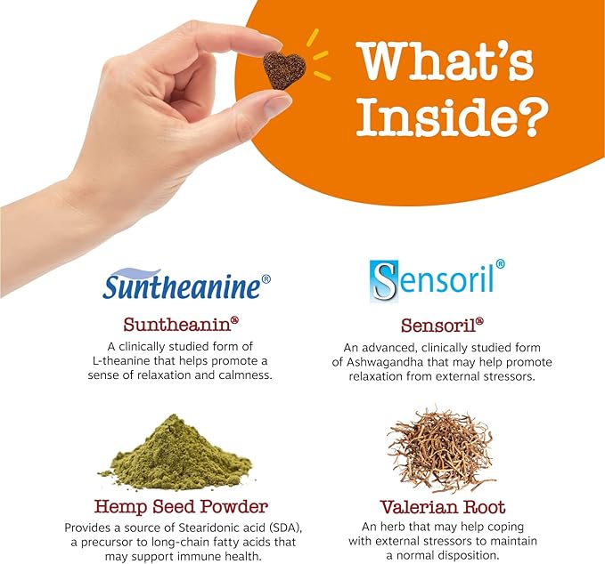• Plus Sensoril Ashwagandha – At 25 mg per chew, this advanced clinically studied form of Ashwagandha can help your canine by promoting a sense of relaxation