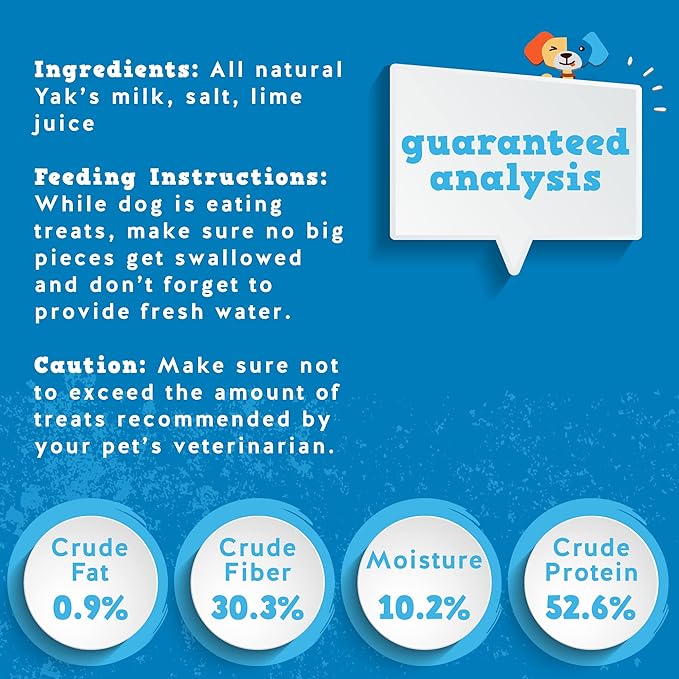 - DELICIOUS AND NUTRICIOUS – The Yak milk dog chew is a protein-rich dog treat, in addition to low in calories and fat. Contains no meat and is naturally processed to be 100% lactose free. These organic cheese sticks are rich in iron and essential fatty acids, such as Omega-3 and Omega-6.