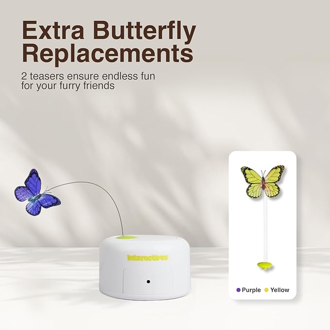 - 2 BUTTER-FLY REFILLS – The Kitten toy is equipped with two replacement butter-flies, so your cat can play with it for a long time.