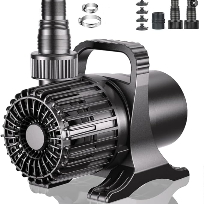 - ULTRA QUIET & OVER-HEAT PROTECTION - Our pond pump is designed to be nearly silent. It features a unique inlet mesh cover that prevents garbage suction as well and reduces motor sounds, ensuring your water bodies are quietly circulated and maintained.Engineered for 24-hour continuous use, while a heat-overload sensor prevents a burnout