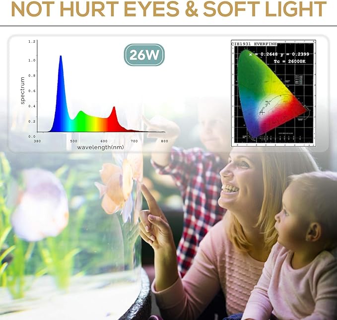 - USEFUL HELPERS: The light is soft, the color rendering index is close to natural light, up to 85%, protecting eyes and fish, to refuse the discomfort caused by stroboscopic for fish and viewers. Using high-quality 2835 + 5050 model lamp beads, long service life, at least 50,000 hours. Lamp beads waterproof, the light is easy to clean and wipe, No need to worry even if it falls into the water briefly