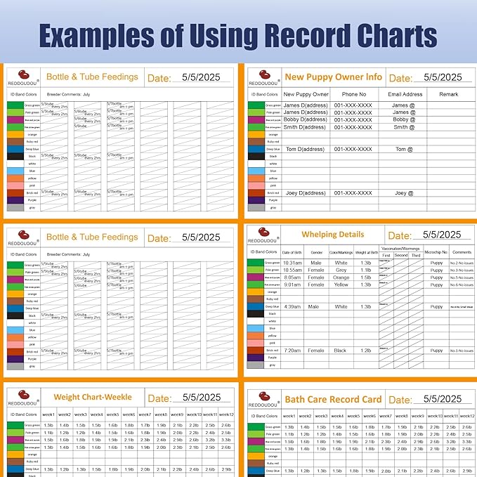 - 12 x puppy ID bands, L size colorful adjustable puppy bands collars for Kitten Puppy can help to keep track and identify pups and kittens easily. Nylon material with soft double velvet ,will not hurt puppies neck.6P Record Keeping Charts can help you keep better track of your pet's health and feeding.